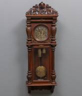 Regulateur in mahonie kast, de kap met composiet decor, de wijzerplaat, slinger en gewichten met gegraveerd bloemdecor, 115 × 39 × 16 cm