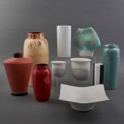 Tien keramische voorwerpen: vazen en een schaal, Europa, jaren '60-'90, 38 × 18 cm
