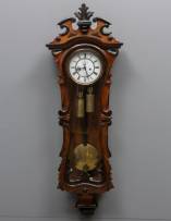 Notengefineerde regulateur met witgeëmailleerde wijzerplaat en twee gewichten, Willem III, 120 cm
