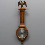 Aneroïde barometer in gepatineerde houten kast met gecanneleerde pilaster, bekroond door bronzen adelaar, uitvoering Stiffel, Duitsland, tweede helft 20e eeuw, 92 × 25 × 8 cm