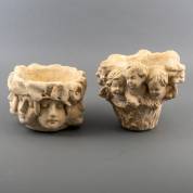 Twee betonnen cache-pots met kinderkopjes en gezichten, naar klassieke voorbeelden, modern, 24 × 30 cm