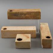 Vier beigegeglazuurde keramische vaasjes, alle uitvoering Mobach, Utrecht, jaren '70, 7 × 7 × 28 cm