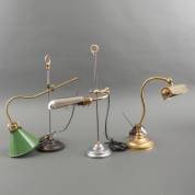 Messing bureaulamp en twee verstelbare uurwerkerslampen -gebruikssporen-, hoogte 51 cm