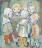 Henk Schuurman (1897-1991), de kinderkring, olieverf op board, r.o. gesigneerd en gedateerd '64, tevens met schildering op verso, 58 × 51 cm