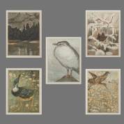 Theo van Hoytema (1863-1917), vogels, vijf litho's in lijst, alle gemonogrammeerd in de druk, 16 × 21 cm