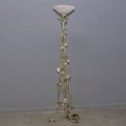 Metalen vloerlamp met glazen kapje, de hoge voet omwonden met klimop, hoogte 157 cm