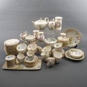 Uitgebreid porseleinen serviesgedeelte met transferdecor: Manderin, uitvoering Wedgwood, eind 20e eeuw, bestaande uit: tien dinerborden, acht diepe borden, acht kleine borden, zes soepkommen op onderschotels, acht diepe schoteltjes, en diverse dienschalen en terrines -gebruikssporen-