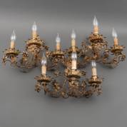 Drie goudkleurige drielichts wandlampen met bloemdecor, 40 × 40 × 25 cm