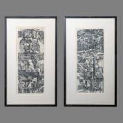 Bert Grotjohann (1939), twee etsen, zonder titel, 4/10 en 2/10, l.o. gesigneerd en gedateerd 1976