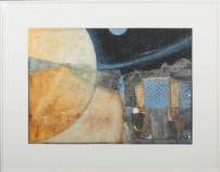 Kunstwerk in aluminium lijst: zonder titel, gemengde techniek, 48 × 68 cm