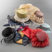 Collectie van twaalf dameshoeden, diverse merken, waaronder: Peter Bettley London, Siggi London, Precise Petite, Jacques Vert, de meeste gemaakt van sinamay, Ø 36 cm