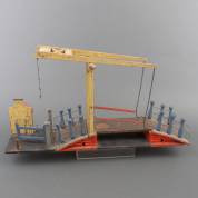 Beschilderde houten speelgoedophaalbrug met brugwachtershuisje, 36 × 75 × 22 cm