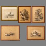 Wiggert Mathol de Jongh (1827-1904), vijf ingelijste tekeningen, deels wit gehoogd, alle r.o. gesigneerd -gebruind en vlekjes-, lijsten circa 35 × 27,5 cm