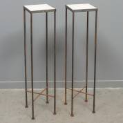 Paar stalen piëdestals met wit keramisch plateau, 90 × 21 × 21 cm