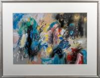Hollandse School: abstracte compositie, acrylverf op papier, niet gesigneerd, 50 × 70 cm