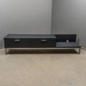 Zwartgelakt tv-meubel op chroomkleurig onderstel, modern, 62 × 272 × 60 cm -gebruikssporen-