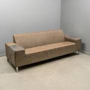 Grijze driezits bank, model 6511, ontwerp Jan des Bouvrie, kleurcode Jazz S7, uitvoering Gelderland, inclusief twee metalen armleggers -bekleding sleets-, 58 × 232 × 83 cm