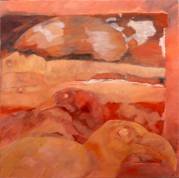 Irene Kasbergen (1945-2023), twee vogels in rood, olieverf op doek, r.o. gemonogrammeerd, verso gesigneerd en gedateerd nov. '93, 70 × 70 cm