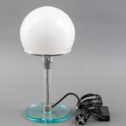 Tafellampje met melkglazen kapje, naar Wilhelm Wagenfeld, gemerkt Cornucopia, hoogte 36 cm