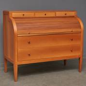 Vruchtenhouten roltopbureautje, laatste kwart 20e eeuw -één knopje met afgebroken stukje-, 103 × 120 × 55 cm