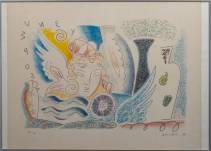 Richard Bouwman (1947), 'Compositie in Griekse stijl', kleurenlitho 95/115, r.o. gesigneerd en gedateerd '88, achterop voorzien van foto's en inscripties: hoogtepunten uit het leven van Herman Brood, het werk is aan hem cadeau gegeven voor zijn 50e verjaardag, 49 × 65 cm