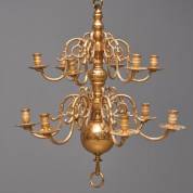Twaalflichts messing kaarsenkroon, 20e eeuw -aanslag-, 65 × Ø 62 cm
