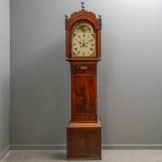 Engels staand horloge in mahonie kast, de wijzerplaat met maan- en datumaanduiding, adres: Walter Tucker, Exeter, de kast voorzien van plaquette met tekst: 'Susan Ronell, the gift of Fleetwood John & Barrington Reynolds Pellew, March 1841', Engeland -vermoedelijk ingekort, gebruikssporen, slijtage aan beschildering van de wijzerplaat-, 215 × 50 × 23,5 cm