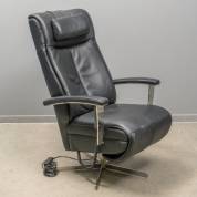 Zwart lederen elektrisch verstelbare relaxfauteuil met chroomkleurige voet, model S-100, uitvoering Prominent, 120 × 73 × 90 cm