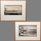Dirk Hidde Nijland (1881-1955), haveningang Scheveningen, litho 59/65, 47,5 × 31 cm, en haveningang Scheveningen, houtdruk 290/500, 57 × 33 cm, beide in potlood r.o. gesigneerd -beide verbruind-