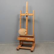 Beukenhouten schildersezel met wielen en slinger voor hoogteverstelling, uitvoering Mabef -gebruikssporen-, 205 × 70 × 70 cm