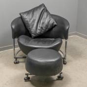 Zwart lederen fauteuil met voetsteun, model , ontwerp Francesco Binfare, uitvoering Cassina, jaren '90 -gebruikssporen-, 85 × 150 × 90 cm