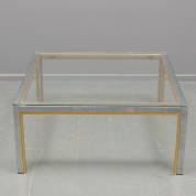 Glazen salontafel met verchroomd metalen en goudkleurig frame, uitvoering Romeo Rega, Italië, jaren '80/'90 -gebruikssporen, kleine beschadiging aan de rand van het blad, metaal geoxideerd-, 41 × 90 × 90 cm