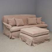 Grote grijze stoffen bank en bijbehorende poef, 90 × 215 × 115 cm