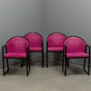 Vier stoelen met paarse bekleding en zwart frame, model Mondi, ontwerp Jouko Järvisalo, uitvoering Inno, Finland, jaren '80 -lichte gebruikssporen, één met losse naad in bekleding-, 81 × 59 × 54 cm