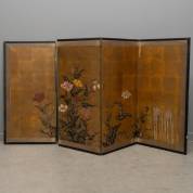 Japans vierslags kamerscherm met floraal decor, 20e eeuw -defecten-, 91 × 184 cm