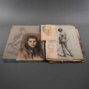 Marie de Jonge (1872-1951), map met schetsen, voornamelijk houtskool figuurstudies, merendeel circa 65 × 50 cm