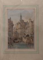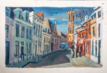 Jeroen Hermkens (1960), Korte Nieuwstraat Utrecht, acrylverf op papier, gesigneerd en gedateerd 2016 -kleine waterschade-, 57 × 90 cm