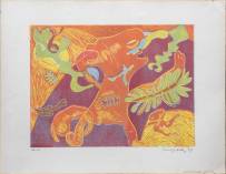 Hollandse School: 'Onbekende Genen', kleuren litho ed.25, r.o. onduidelijk gesigneerd en gedateerd '69, 43 × 55 cm