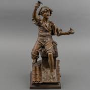 Émile Edmond Peynot (1850-1932), de jonge schoorsteenveger, met krabber en borstel, brons, gesigneerd op schoorsteen, 46 cm hoog