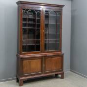 Mahonie boekenkast, de beglaasde opstand met roedeverdeling en messing deurlijsten, Engeland, 19e eeuw -gebruikssporen-, 242 × 155 × 36 cm