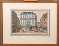 Ingekleurde opticaprent, Wenen: gezicht op het vroegere Schönbrunnerhaus, door Johann August Corvinus (1683-1738), naar origineel van Salomon Kleiner (1700-1761), 1725-1733, 26 × 34 cm