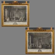 Twee kopergravures: 'l'Assemblée au concert' en 'l'Assemblé au salon', F.N.B. Dequevauviller (1745-1807) naar Nicolas Levreince (1737-1807), eind 18e eeuw, 40 × 50 cm