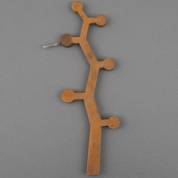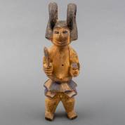 Afrikaans traditioneel houten beeld: Ikenga wachter met oker en blauwe verfresten, Igbo, Nigeria, tweede helft 20e eeuw -krimpscheur, kleine houtwormgaatjes-, hoogte 40 cm