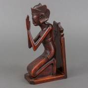 Gesneden houten boekensteun, biddende man, Bali, tweede kwart 20e eeuw -speling in achterwand-, 25 cm hoog
