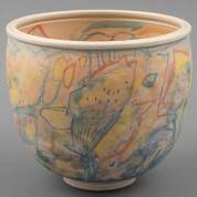 Gert de Rijk (1945-2009), keramische cache-pot met aan de binnen- en buitenzijde een polychroom decor, op de onderzijde gemonogrammeerd en gedateerd '99, herkomst: Collectie Galerie Jas, Utrecht, 20 × Ø 22,5 cm