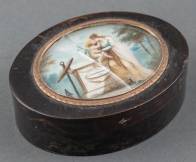 Ovaal schildpad doosje met schildering in het deksel: 'L'esperance', eind 18e eeuw -defecten-, 8,5 × 6,2 cm