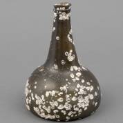 Groen glazen kattekopfles -zeevondst, schelpaanslag-, 19,5 × Ø 14 cm