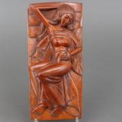 Gesneden houten beeld: liggende Balinese schone, Bali, niet gesigneerd, midden 20e eeuw, 8 × 28,5 × 14,5 cm