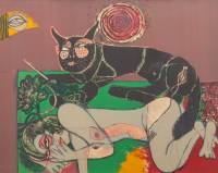 Corneille (1922-2010), 'Une Femme au Chat II', zeefdruk 52/99, r.b. gesigneerd en gedateerd '75, herkomst: Collectie Galerie Jas, Utrecht, 51 × 65 cm