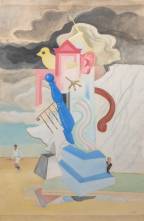 Johannes Hendrikus 'Joop' Moesman (1909-1988), surrealistische voorstelling, gouache, r.o. gesigneerd en gedateerd 1930, herkomst: collectie Galerie Jas, Utrecht -horizontale vouw aan boven en onderzijde, enkele vlekken en punaisegaatjes in de hoeken, volgrecht van toepassing-, 106 × 70 cm